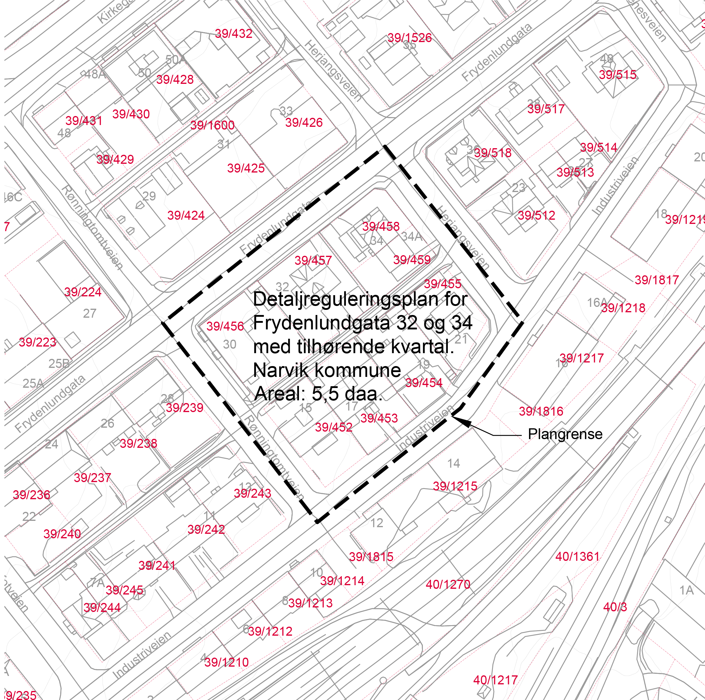 Varsel om oppstart av detaljregulering Frydenlundgata 32 og 34 med tilhørende kvartal, Narvik kommune